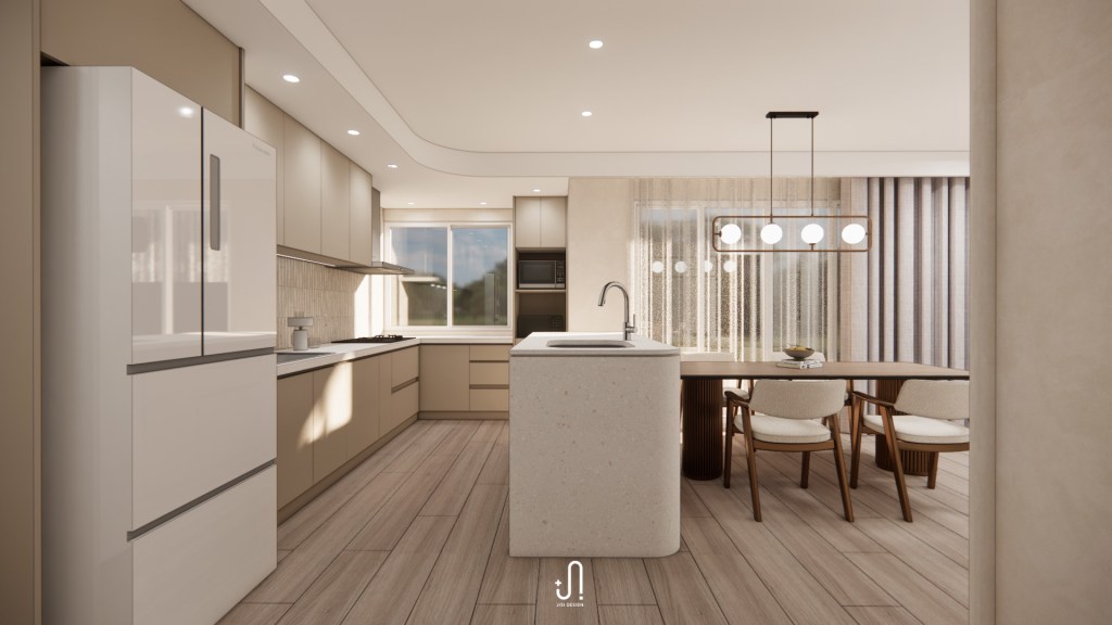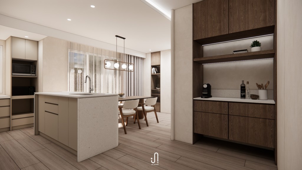我們以餐廚區為設計主軸,讓家的重心回到陪伴與交流,整合出一個自在、開放又充滿細節的核心空間:
